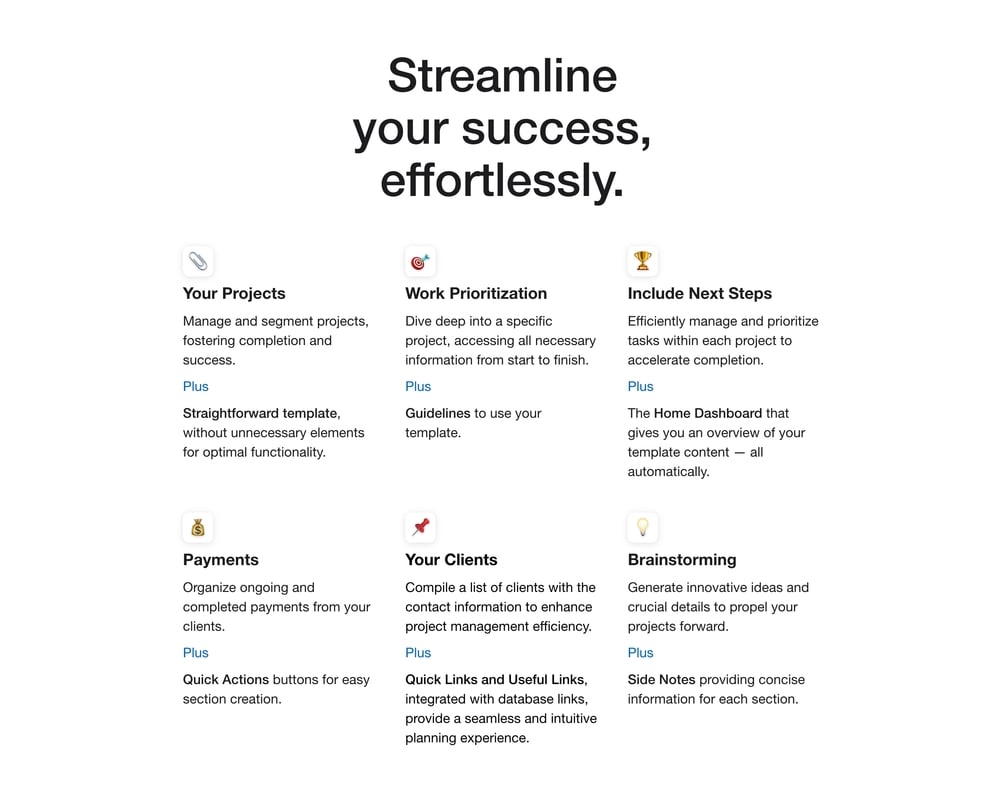 Designed with freelancers, small businesses, and creatives in mind, this template streamlines project management, boosts client interactions, and optimizes your workflow effortlessly.