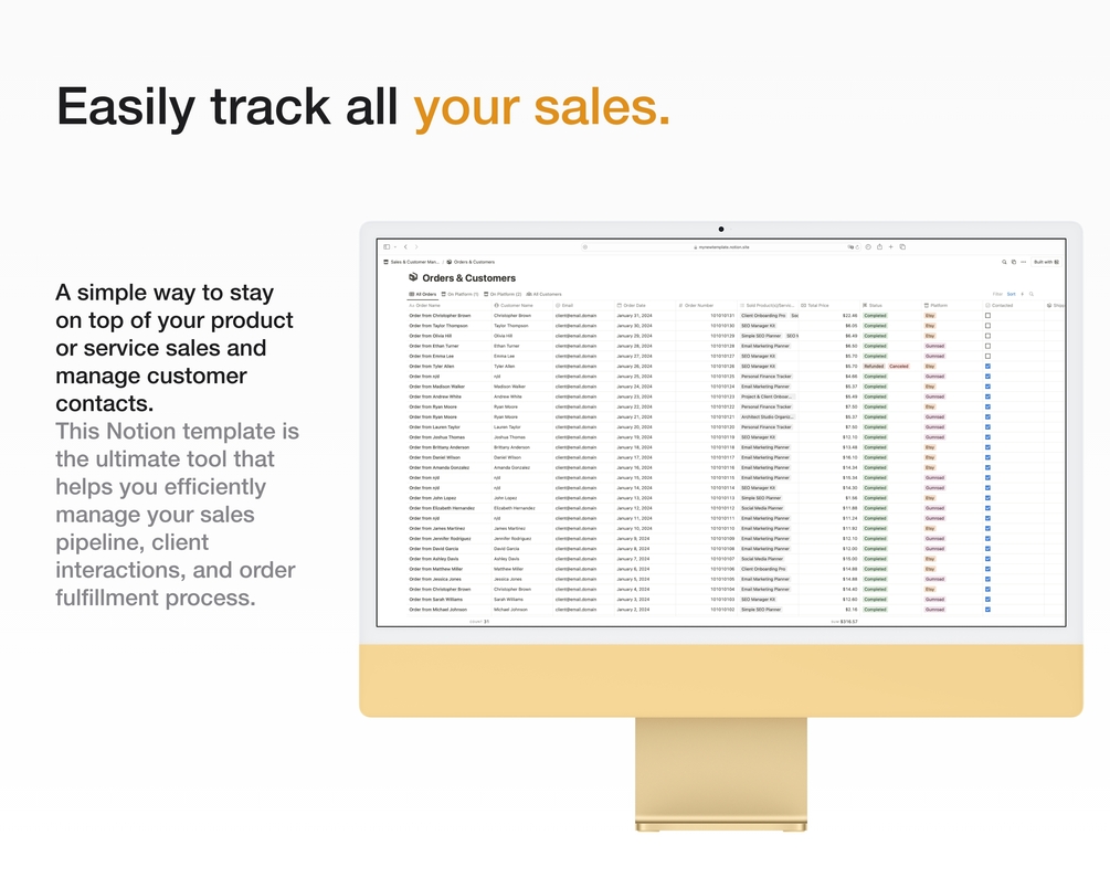 - Perfect for tracking sales, storing customer information, and especially for those seeking valuable insights into revenue across all orders.